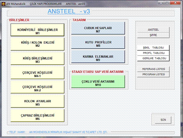 ANSTEEL PROGRAMI İNŞ.YÜK.MÜH. CEMAL AŞKIN ANGI TARAFINDAN HAZIRLANMIŞTIR. PROGRAM İLE İLGİLİ HER TÜRLÜ HAK , ÜRÜN SAHİBİ CEMAL AŞKIN ANGI ' YA AİTTİR.